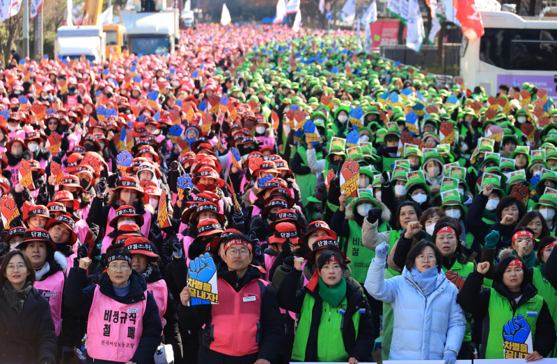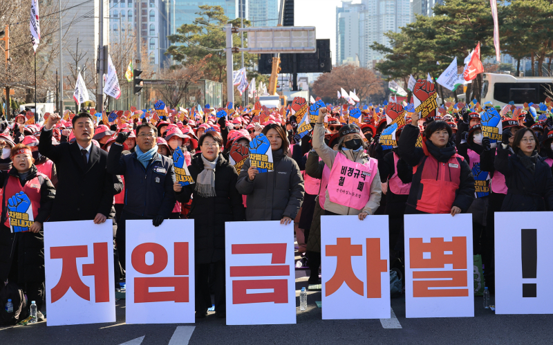 연대회의는 최저임금 이상 기본급 지급, 동일 기준 명절휴가비, 방학 중 무임금 해소 등을 요구하고 있다.