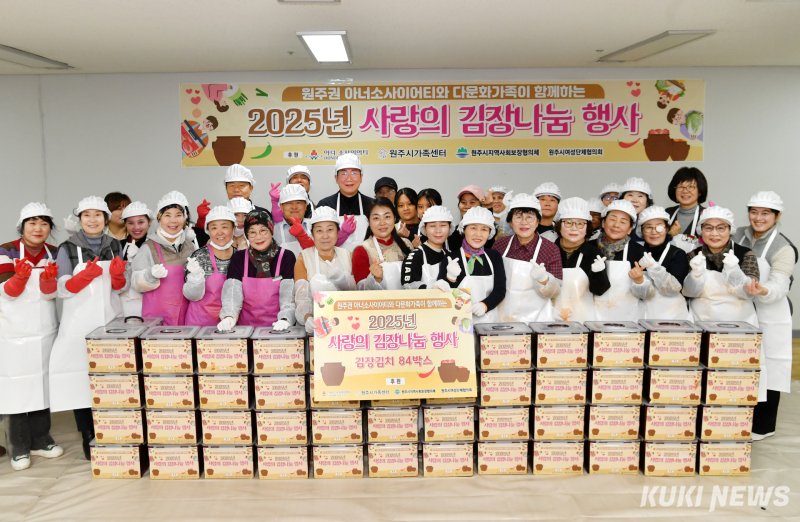 원주권 아너소사이어티(회장 김종태)는 4일 시청 지하 2층에서 원주시지역사회보장협의체(대표 조주복)와 함께 ‘다문화가족 김장 나눔 행사’를 개최했다.
