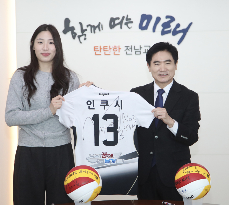 이날 위촉식에서 김대중 교육감과 인쿠시는 각각 배구공에 서명했고, 인쿠시는 서명한 자신의 유니폼을 전남교육청에 전달했다.