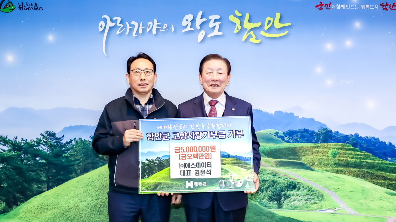 함안군은 5일 대산면 소재 기업 에스에이티(SAT)가 고향사랑기부금 500만원을 기탁했다. 기탁식은 군청에서 열렸으며 조근제 함안군수와 에스에이티 김윤석 대표 등이 참석해 따뜻한 분위기 속에서 진행됐다.