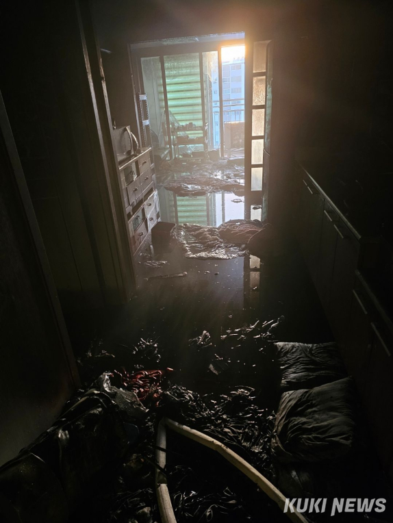6일 화재가 발생한 철원군 이평리 아파트 내부. (사진=강원특별자치도소방본부)