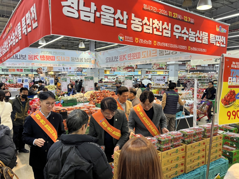 경남농협(본부장 류길년)은 경상남도(농정국장 이정곤)와 함께 11월 27일부터 12월 7일까지 농협하나로유통 울산유통센터에서 ‘경남·울산 농심천심 우수 농산물 특판전’을 개최했다. 이번 행사는 경남 농산물의 우수성을 홍보하고 울산권 소비자와의 접점을 확대하기 위해 마련됐다.