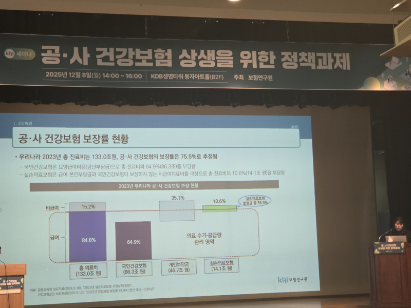 공·사보험 정보 연계 기반 마련도 필수라고 했다. 그는 “법적 근거 부재로 정보 연계가 이뤄지지 않고 있다”며 “상설 협력기구와 기술 플랫폼을 구축해야 한다”고 강조했다. 이어 “장기적으로는 비급여 가격과 진료 기준을 규율하는 법적 장치도 필요하다”고 덧붙였다.