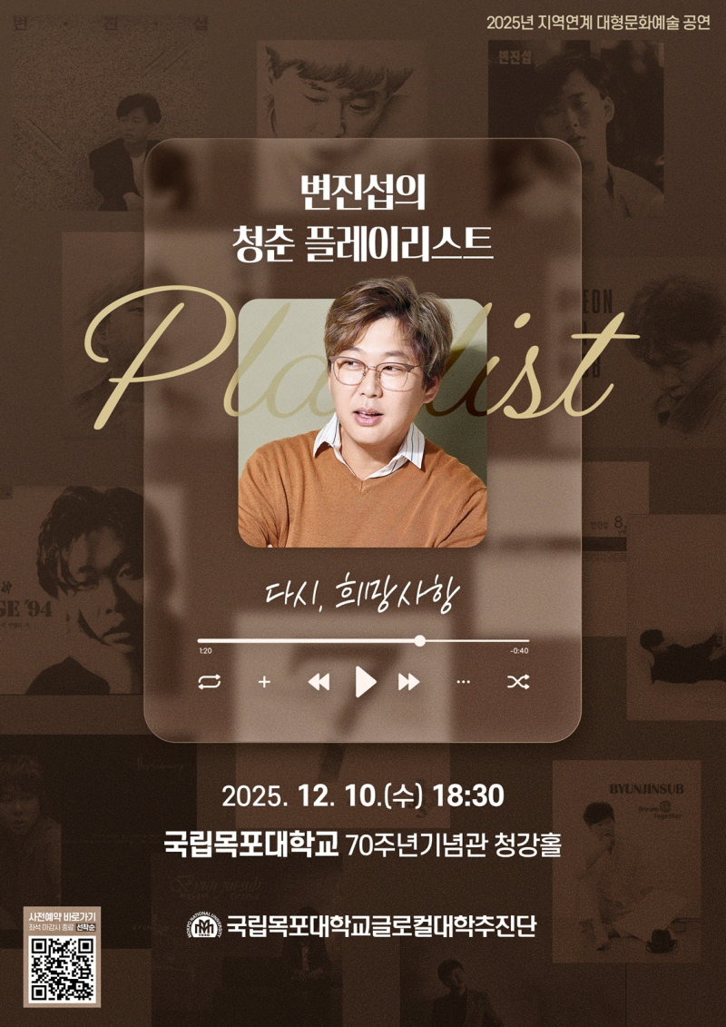 한편, 국립목포대는 최근 교육부가 주관한 2025년 글로컬대학 연차평가에서 전국 20개 대학 중 유일하게 최고 등급인 S등급을 획득하며 전국 1위 최우수 대학으로 인정받은 혁신 성과를 바탕으로, 앞으로도 지역민과 학생 모두의 일상에 기쁨과 감동을 선사하는 ‘문화예술 중심대학’으로서의 역할을 지속할 방침이다.