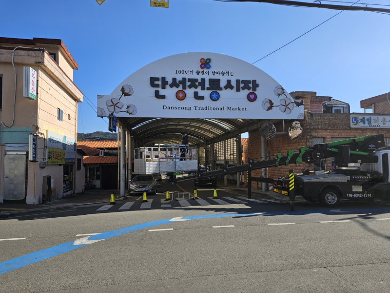 사업에서는 10년 이상 경과해 유지·보수가 시급했던 방부목 간판을 철거하고 30㎡ 규모 신규 간판 2개소를 설치했다. 특히 신규 간판은 시장의 상징성을 강화하고 이미지를 개선하는 데 중점을 두고 제작 및 설치됐다.