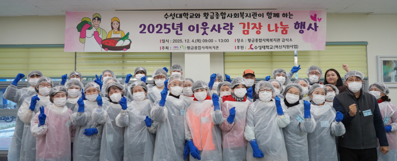 수성대는 지난 4일 대구시 수성구 황금동 황금복지관에서 교직원과 학생 40여명이 참여한 가운데 ‘2025년 사랑의 김장 바자회’를 열어 김치 담그기와 나눔 활동을 펼쳤다.