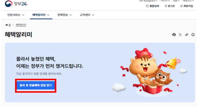 행정안전부는 개인 맞춤형 공공서비스를 알려주는 ‘혜택알리미’가 10일부터 본격 운영에 돌입한다고 밝혔다.