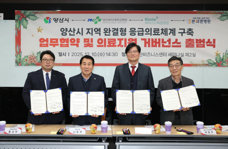 나동연 양산시장은 “이번 협약은 지역 의료의 미래를 함께 만들어가는 중요한 첫걸음”이라며 “응급상황에서 걱정 없이 치료받을 수 있도록 지역 의료기관과 더욱 긴밀히 협력하고 체계를 발전시켜 나가겠다”고 강조했다.