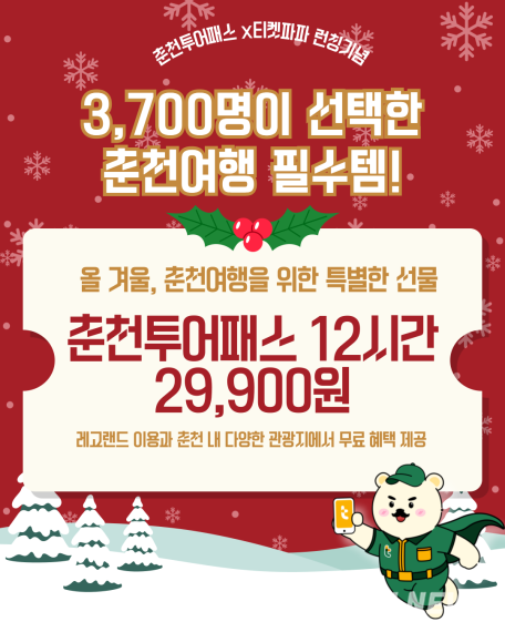 춘천시 관계자는 "연말 춘천여행을 하루 동안 알차게 즐길 수 있도록 레고랜드를 포함한 12시간권을 기획했다"라며 "겨울철 춘천을 찾는 가족·연인들에게 더 풍성한 여행 경험이 되길 바란다"라고 말했다.