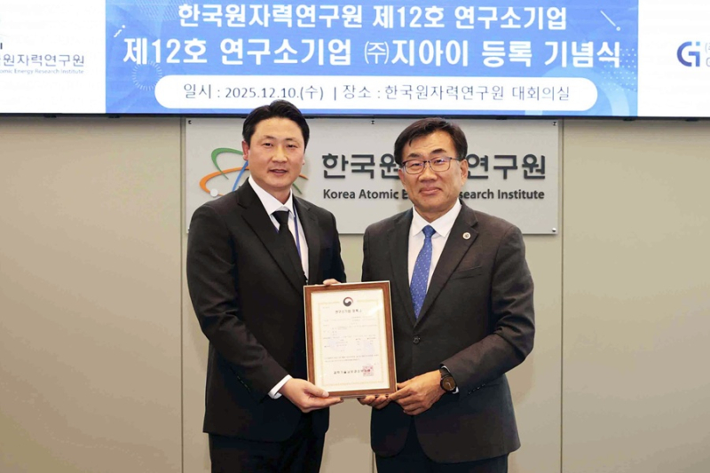 한국원자력연구원(이하 원자력연)이 전북 정읍시에 제12호 연구소기업 ㈜지아이(GI Co., Ltd)를 10일 설립했다.