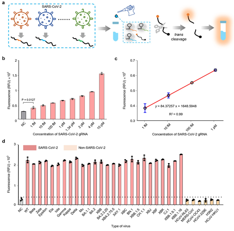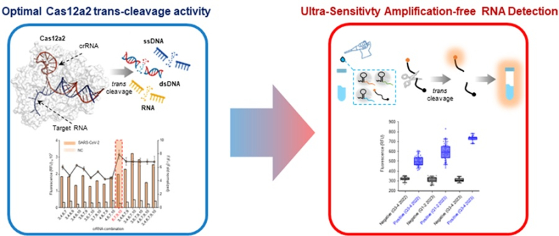 또 Cas12a2는 표적을 찾으면 주변의 ssDNA, RNA 등을 무차별적으로 빠르게 여러 번 자르는 특성이 있어 아주 약한 바이러스 신호도 형광신호로 포착할 수 있다.