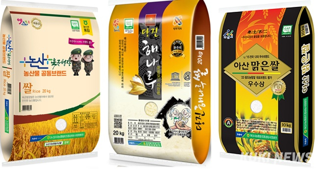 충남도 농업기술원은 ‘제3회 충남 품질관리 우수 브랜드 쌀'을 선정했다. 왼쪽부터 대상 논산육군병장쌀, 최우수상 당진해나루쌀, 우수상 아산맑은쌀. 충남도 농업기술원은 ‘제3회 충남 품질관리 우수 브랜드 쌀’ 대상으로 논산시 ‘육군병장쌀’을 선정해 시상했다고 11일 밝혔다.