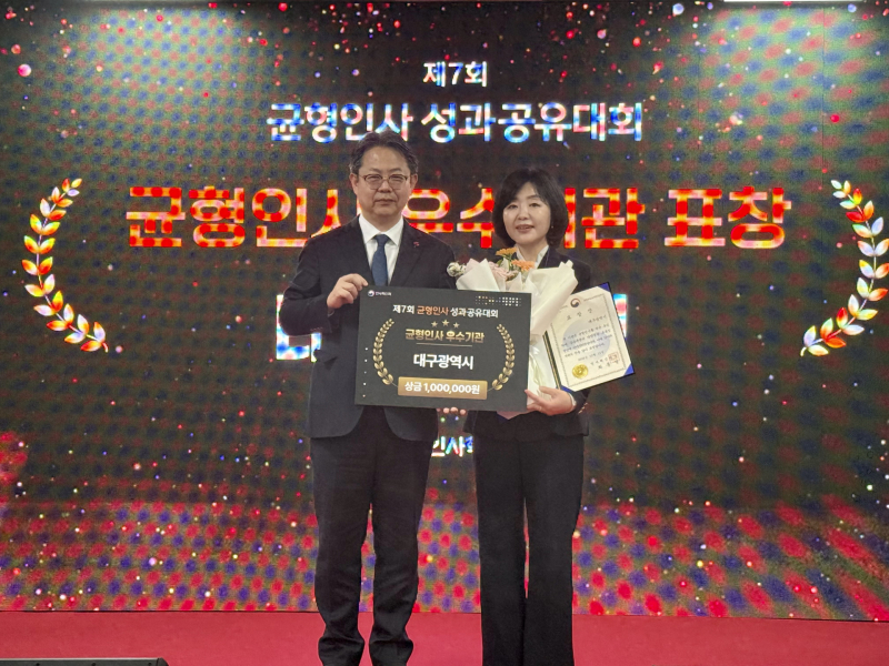 대구시는 11일 세종컨벤션센터에서 열린 인사혁신처 주관 ‘2025 균형인사 평가’에서 지방자치단체 우수기관으로 선정됐다.