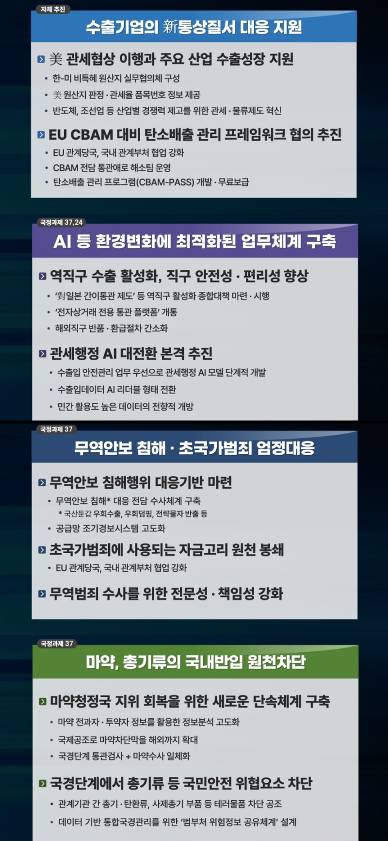 이밖에 총기류 등 위해품 차단을 위해 경찰청 등 관계 기관과 협업을 강화하고, ‘데이터 기반 통합 국경관리체계’ 설계를 추진한다.