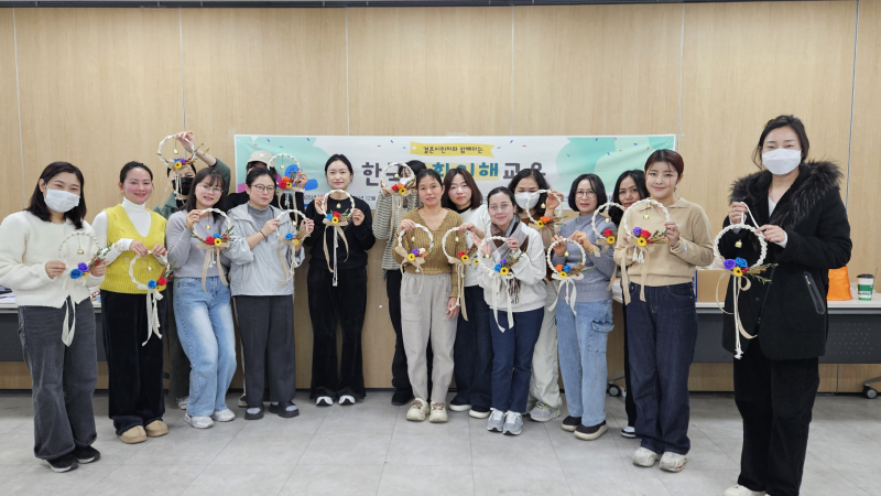 교육은 총 5회에 걸쳐 진행됐으며, 참가자들은 김장 체험을 비롯해 전통 자개 찻상 만들기, 녹두꽃 다과 만들기, 액막이 글라스아트, 전통 매듭 공예 리스 제작 등 다양한 프로그램을 즐겼다. 이를 통해 한국의 미와 정서를 오감으로 느끼는 시간을 가졌다.