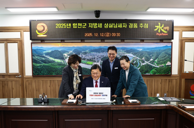 합천군은 12일 군청 소회의실에서 김윤철 군수를 비롯한 군청 관계자가 자리한 가운데 '2025년 지방세 성실납세자 경품 추첨행사'를 실시했다.