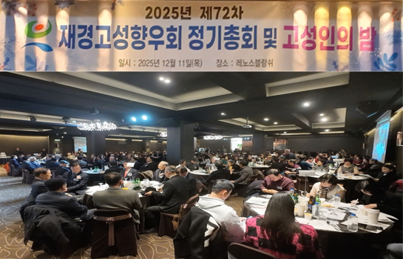재경고성향우회가 지난 11일 서울 성동구 레노스블랑쉬 연회장에서 ‘제72차 정기총회 및 고성인의 밤’ 행사를 열고 향우 간 화합을 다졌다.