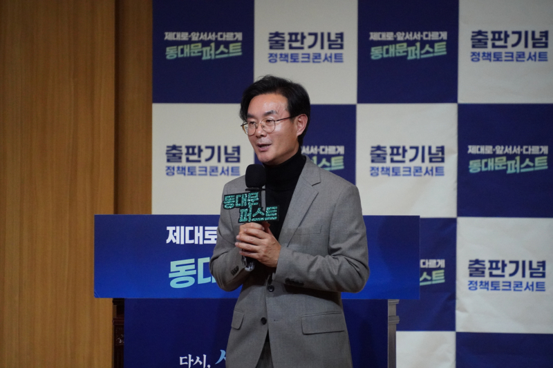 최동민 전 청와대 행정관이 13일 오후 서울시립대학교에서 저서 ‘제대로 앞서서 다르게-동대문 퍼스트’ 출판 기념 정책 토크콘서트를 열었다. 이날 행사에는 정치권과 지역 인사들이 참석해 자리를 함께했다.