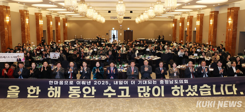 충남도의회는 15일 예산 스플라스 리솜 그랜드홀에서 도의원과 사무처 직원, 도지사, 교육감 등 220여 명이 참석한 가운데 ‘2025년 한마음 송년 워크숍’을 개최했다. 충남도의회는 15일 예산 스플라스 리솜 그랜드홀에서 도의원과 사무처 직원, 도지사, 교육감 등 220여 명이 참석한 가운데 ‘2025년 한마음 송년 워크숍’을 개최했다.