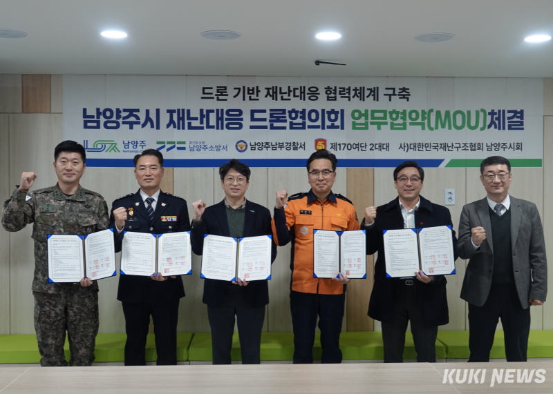 경기 남양주시는 15일 시청에서 남양주소방서, 남양주남부경찰서, 제170여단 2대대, (사)대한민국재난구조협회 남양주지회와 함께 드론을 활용한 재난대응 체계를 구축하기 위한 업무협약(MOU)을 체결했다고 밝혔다.