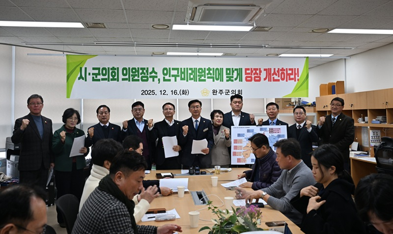 완주군의원들은 올 11월 기준 완주군 인구는 10만 520명으로, 정읍시(10만 722명)와 유사한 규모지만 의원 수는 6명이나 적고, 인구가 더 적은 남원시와 김제시 역시 완주군보다 많은 기초의원을 두고 있어, 완주군만 상대적으로 과소대표 상태에 놓여 있다고 주장했다.