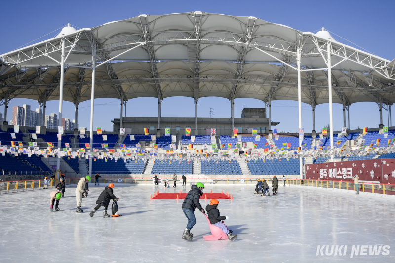 강원 원주의 겨울철 대표 레포츠 시설인 야외 아이스링크장과 눈썰매장이 오는 24일 오픈한다.