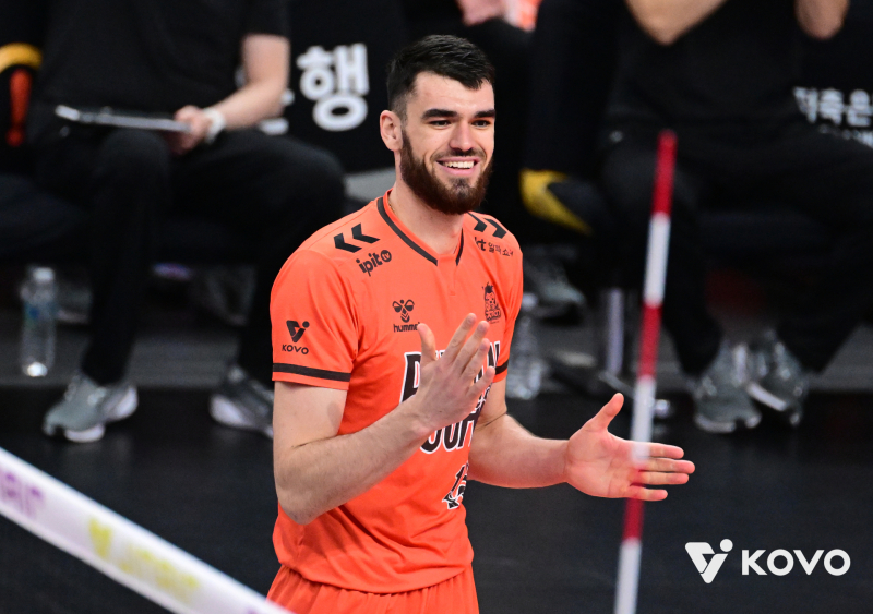 세트 후반 원 포인트 서버 신장호가 빛났다. 구석에 서브를 꽂았고 박창성의 오픈을 만들어내며 20점 고지를 먼저 밟았다. 우리카드는 쉽게 물러서지 않았다. 신장호의 서브 미스와 아라우조의 백어택으로 20-19가 됐다. 23-21에서 한태준이 올려준 공이 낮았고 아라우조가 히트하지 못했다. 이어진 박창성이 서브 득점으로 25-21 세트 승리를 이끌었다.