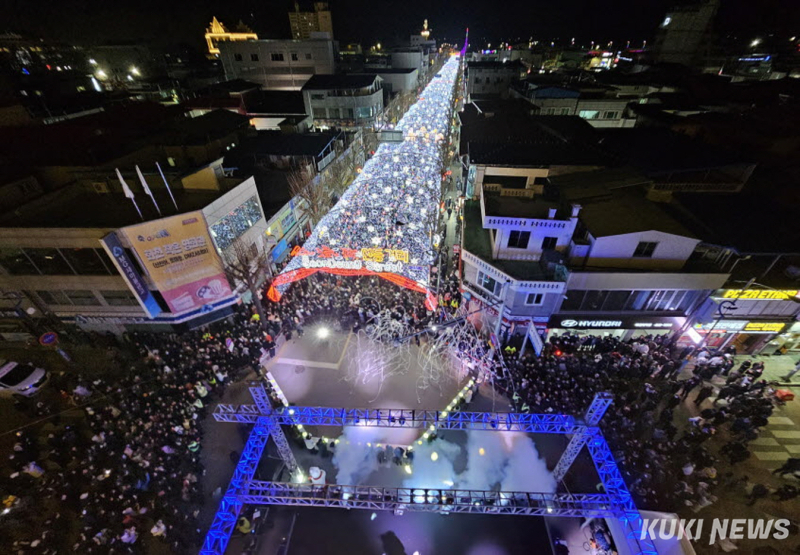 선등거리에는 지난 1년 간 화천지역 어르신들이 손수 제작한 형형색색의 산천어등과 LED 조명 수만여 개가 설치됐다.