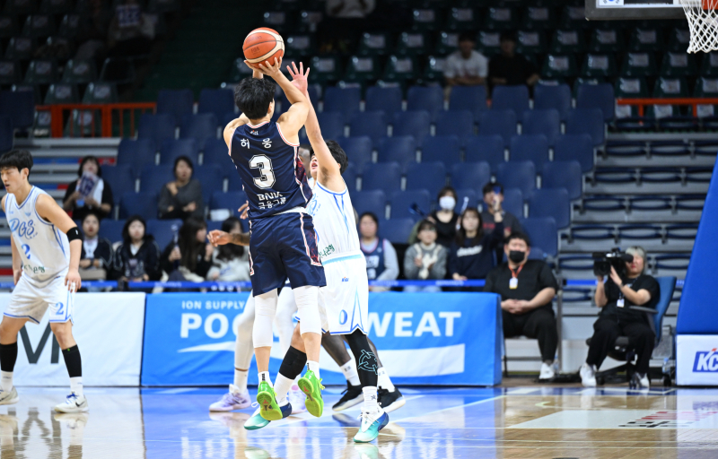 2쿼터에도 팽팽한 흐름이 이어졌다. 가스공사는 공격 리바운드 싸움에서 힘을 내며 2점을 적립했다. 김민규도 역습을 통해 레이업을 올리면서 가스공사가 다시 치고 나갔다. 닉 퍼킨슨은 골밑 싸움으로 공격 리바운드를 재차 따냈다. 그러나 허웅과 나바로가 2점씩 올렸고 점수는 다시 35-35 동점이 됐다.