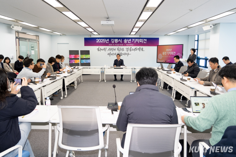 김홍규 강릉시장은 19일 시청에서 '2025년 강릉시 송년 기자회견'을 갖고 "내년부터 연곡 지하수저류댐 설치, 연곡정수장 현대화, 연곡정수장 증설, 노후 상수관망 정비, 성산지역 농어촌생활용수개발사업, 남대천·도마천 대형관정 신설, 남대천 제2취수장 용수개발사업 등 보조수원 확보 유지·관리 등을 통해 안정적으로 수돗물을 공급하기 위해 최선을 다 하겠다"고 밝혔다.