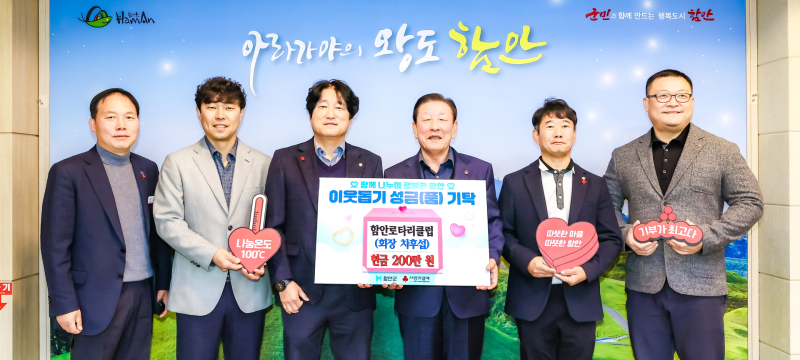 함안군은 함안로타리클럽(회장 차후섭)이 지난 18일 ‘희망 2026 나눔 캠페인’에 동참하며 이웃돕기 성금 200만원을 기탁했다고 밝혔다. 해당 성금은 경상남도사회복지공동모금회를 통해 관내 저소득 취약계층 지원에 사용될 예정이다.