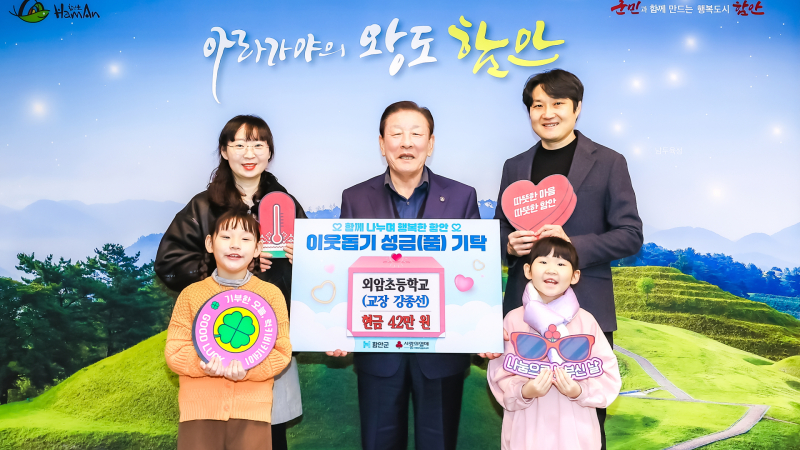 외암초등학교에서는 학생과 교직원이 함께 모은 성금 42만원을 ‘희망 2026 나눔 캠페인’에 기탁해 나눔의 의미를 더했으며, 여항면에서는 여항의용소방대와 함안친환경안전 농산물영농조합법인이 성금과 친환경 백미를 기탁했다.