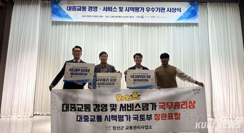오세준 정선군 교통관리사업소장은 “이번 수상은 군민의 일상 속 이동 불편을 해소하기 위해 현장에서 하나하나 개선해 온 교통정책이 종합적으로 평가받은 결과”라며 “앞으로도 주민 맞춤형 서비스 확대를 통해 군민 누구나 안전하고 편리하게 이동할 수 있는 정선형 교통복지 모델을 더욱 공고히 해나가겠다”고 말했다.