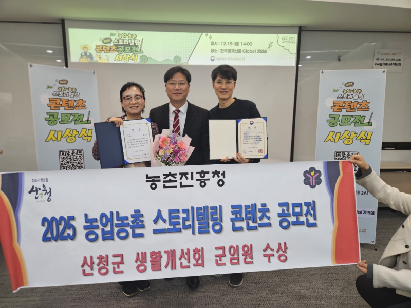 산청군은 산청군 생활개선회 박영순 부회장이 지난 19일 농촌진흥청과 ㈜아그로플러스가 공동 주최한 ‘2025 농업‧농촌 스토리텔링 콘텐츠 공모전’에서 장려상을 수상했다.