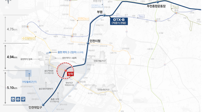 시에 따르면 국토교통부로부터 연수구 청학사거리 인근 추가정거장 신설에 대한 타당성 검증 결과 경제성(B/C 1.03)과 재무성(R/C 2.20)을 모두 확보해 사업 추진이 가능해졌다.
