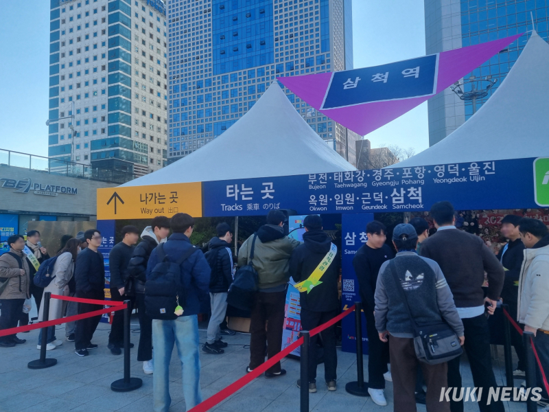 이번 행사는 동해중부선 개통으로 동해안 철도 접근성이 한 차례 개선된 데 이어, 오는 12월 30일부터 동해선 구간에 KTX-이음이 처음 투입되는 점을 계기로 마련됐다. 재단은 KTX-이음 운행이 본격화될 경우 부산·경남권에서 삼척을 찾는 관광 수요가 크게 늘어날 것으로 보고, 철도 이용객을 직접 겨냥한 현장 홍보에 나섰다.
