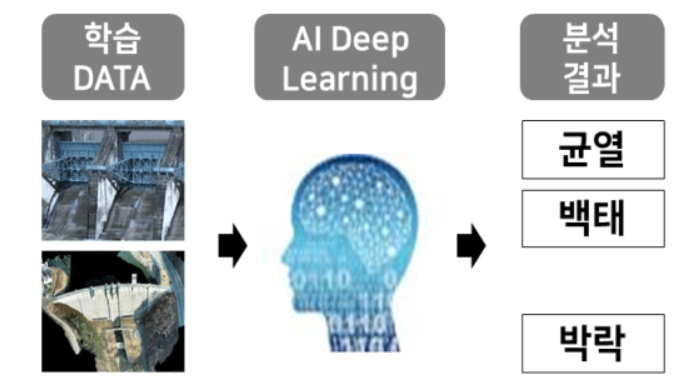 또한 항공 및 수중 무인기를 활용해 사람이 접근하기 어려운 댐체 고지, 수중의 수로터널, 여수로 등의 시설물에 대해 사각지대 없는 안전점검을 실시한다. 아울러 인공지능(AI)을 활용해 무인기로 촬영한 영상에서 댐체의 손상부분을 자동으로 검출한다.