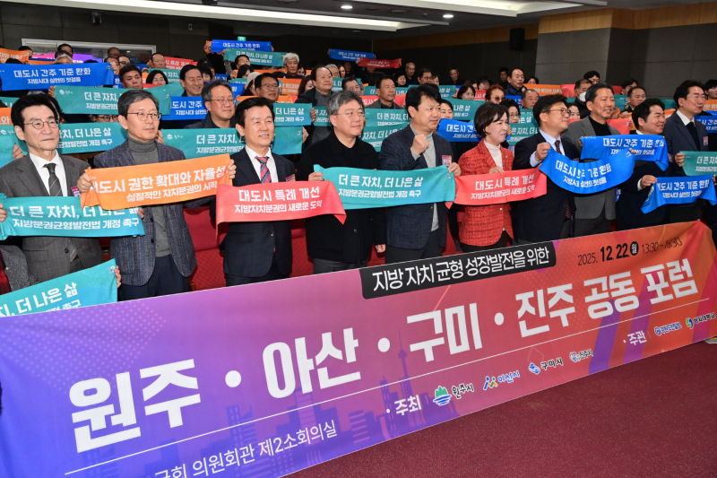 이번 포럼은 진주시를 비롯한 원주·아산·구미시가 공동 주최했으며, 국회에서는 진주의 박대출·강민국 의원, 원주의 박정하·송기헌 의원, 아산의 복기왕 의원, 구미의 구자근·강명구 의원 등이 함께 참여했다. 포럼에서는 대도시 특례 확보를 통한 지역 균형발전 방안이 논의됐다.