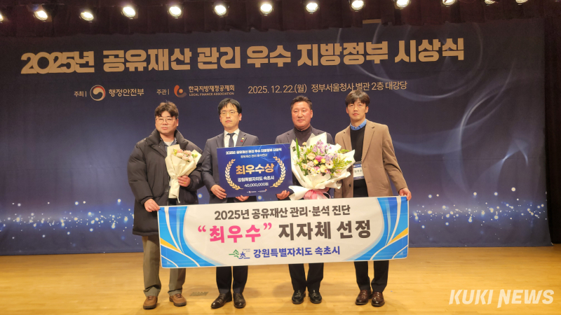 속초시는 22일 정부서울청사에서 열린 행정안전부 주최한 '2025년 공유재산 우수 지방자치단체 시상식'에서 최우수 지자체로 선정됐다고 밝혔다.