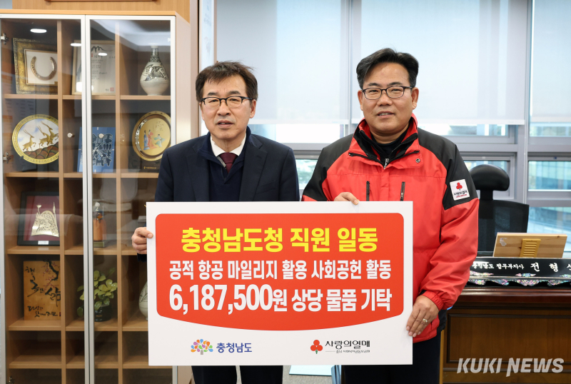 이번 행사에는 도청과 충남소방본부, 소방서 등 26개 부서가 참여했으며, 공적 항공마일리지를 활용해 618만 7500원 상당 42종 156개 기부 물품을 마련했다.