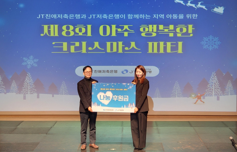 장명기 JT친애저축은행 경영본부장은 “지역 아동들이 크리스마스를 따뜻한 추억으로 기억하고 건강하게 성장하길 바라는 마음으로 이번 행사를 마련했다”며 “앞으로도 복지 사각지대에 놓인 아동과 청소년을 살피며 지속적인 나눔 활동을 이어가겠다”고 말했다.