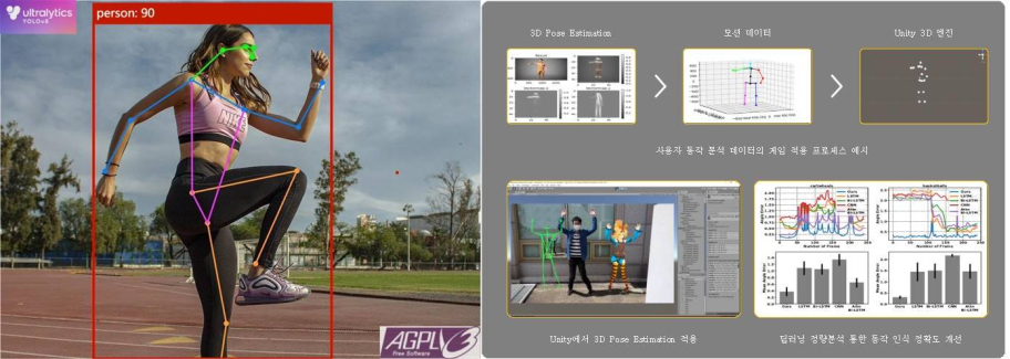 게임의 핵심 기술은 커넥트월드가 자체 개발한 AI 동작인식·평가 솔루션이다. 객체 검출에 강점을 지닌 YOLO 모델과 3차원 자세 추정 기술인 Vnect를 융합해 일반 카메라 환경에서도 안정적인 3D 동작 인식이 가능하다. 관절 움직임과 동작 흐름까지 분석할 수 있어 실제 안무와의 유사도를 정밀하게 산출하며 다중 인식 기술을 통해 그룹 댄스 분석까지 확장할 수 있다.