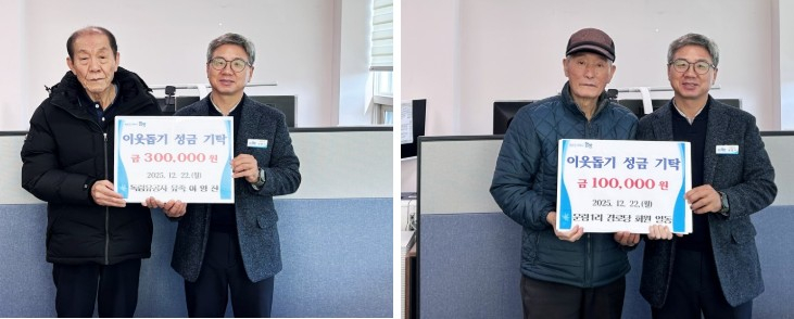 함양읍에서도 나눔 소식이 이어졌다. 독립운동가 이장우 선생의 후손 이영찬 씨는 연말을 맞아 함양사랑상품권 30만원을 기탁해 선열의 정신을 이웃사랑으로 실천했다. 또 운림1리 경로당 어르신들은 이웃돕기 성금 10만원을 기탁하며 매년 이어온 나눔 전통을 이어갔다.
