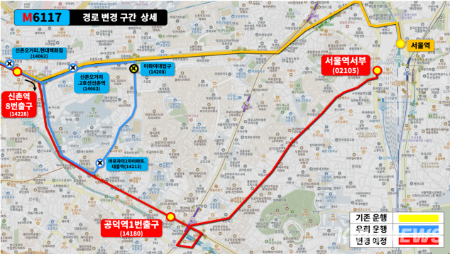이번 조치는 서울 서소문고가 철거 공사로 서울역 정차가 중단됐던 상황을 해소하기 위한 것으로, 노선 변경에 따라 기존 신촌오거리·이화여대입구·대흥역 인근 정류소는 정차하지 않고 신촌역 8번 출구, 공덕역 1번 출구, 서울역 서부 정류소에 새롭게 정차한다.