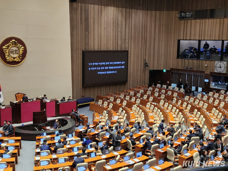 국회는 23일 본회의를 열고 ‘내란·외환·반란 범죄 등의 형사절차에 관한 특례법안’의 표결을 진행했다. 해당 법안은 재석 179명 중 찬성 175명, 반대 2명, 기권 2명으로 가결됐다.