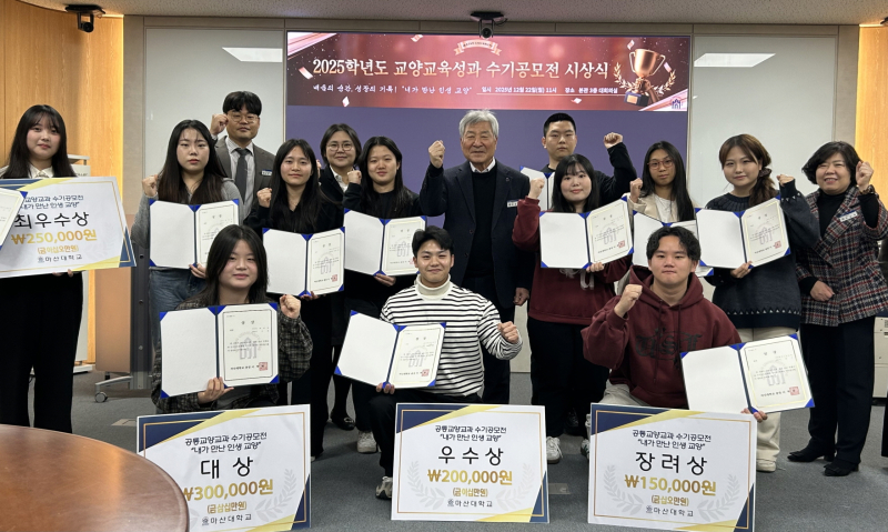 마산대학교(총장 이학진)는 22일 2025년 혁신지원사업 교양교육성과를 공유하는 ‘내가만난인생교양’ 수기공모전 시상식을 개최하고 이나경(치위생과) 학생 등 21명을 수상자로 선정했다.