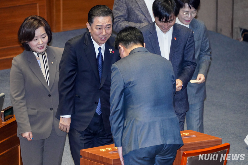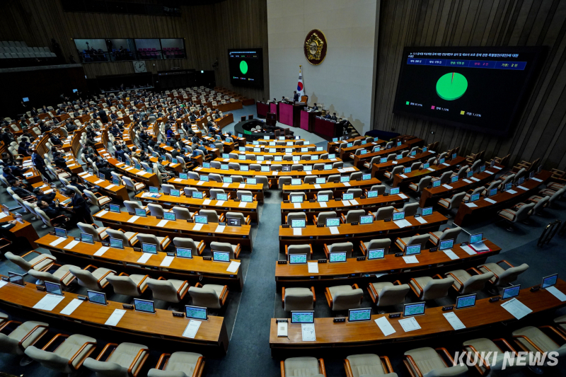 23일 서울 여의도 국회 본회의장에서 ‘12·3 윤석열 비상계엄 등에 대한 전담재판부 설치 및 제보자 보호 등에 관한 특별법안(대안)에 대한 수정안’이 통과되고 있다.