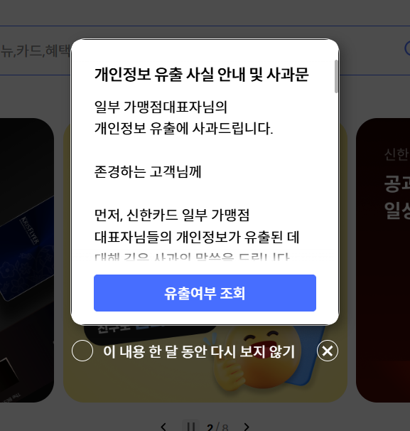 신한카드는 일부 가맹점 대표자의 휴대전화번호가 외부로 유출된 사실을 확인하고 개인정보보호위원회에 신고했다고 23일 밝혔다. 이번 사안은 공익 제보를 계기로 드러났다.