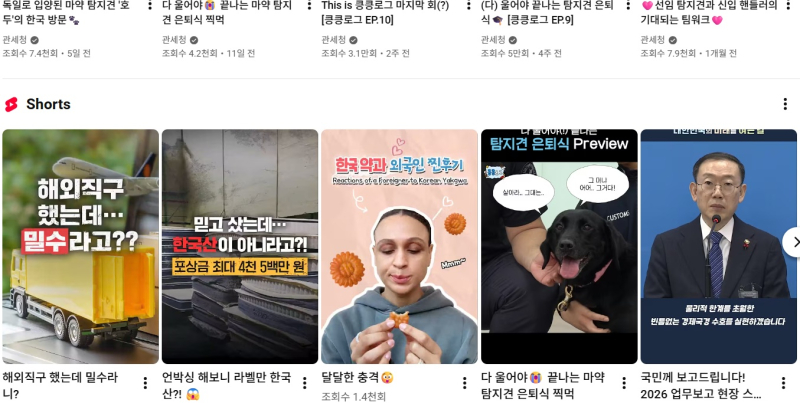 대표 콘텐츠인 ‘킁킁로그’는 마약 탐지견을 활용해 관세청의 마약 유입 차단 역할과 전문성을 자연스럽게 소개한 시리즈로, 탐지견의 성장 과정을 이야기 형식으로 구성해 공감을 이끌어 누적 조회수 330만 회를 기록 중이다.