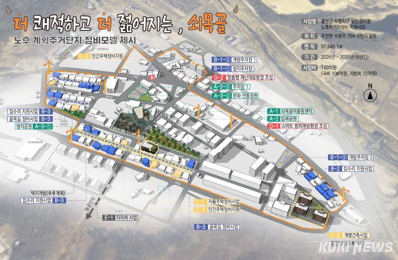 횡성군은 지난 18일 국토교통부가 주관한 ‘2026년 도시재생사업 공모’에 최종 선정돼 우천면 일원에 노후주거지정비 지원사업이 본격화된다고 24일 밝혔다.
